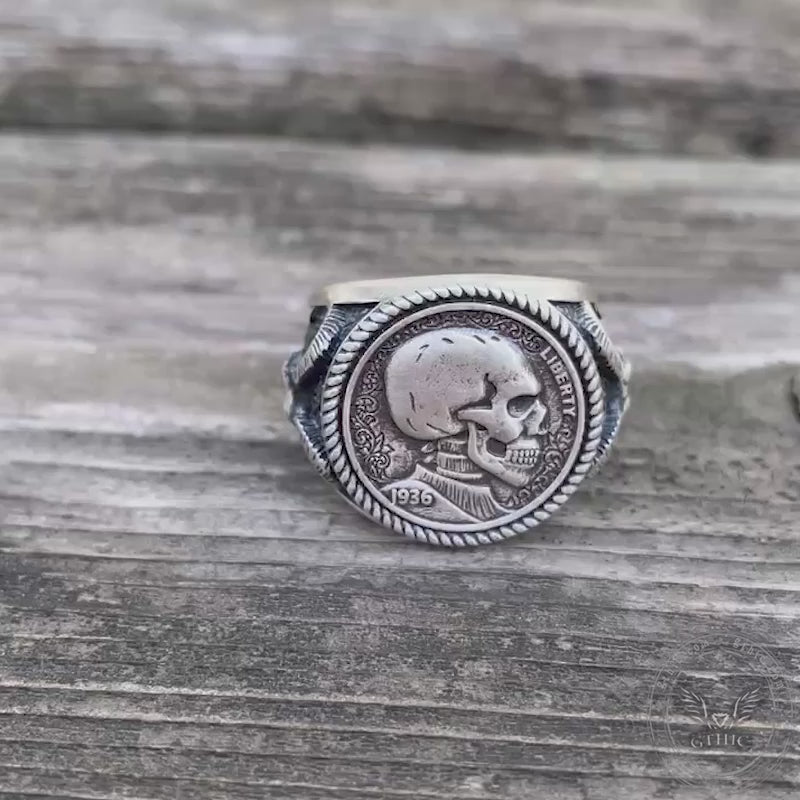 Skull Hobo Nickel Sterling Silver Ring | Gthic.com