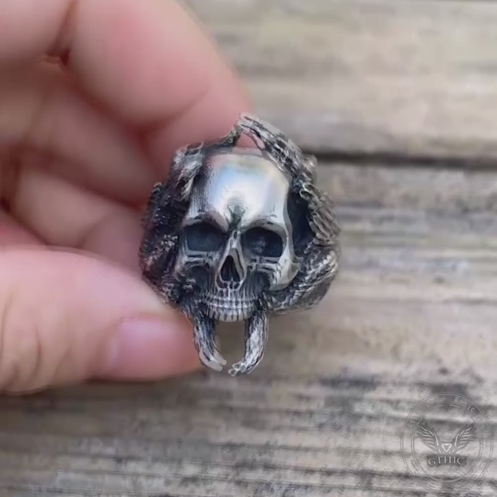 Cover Mouth Skull Sterling Silver Gothic Ring