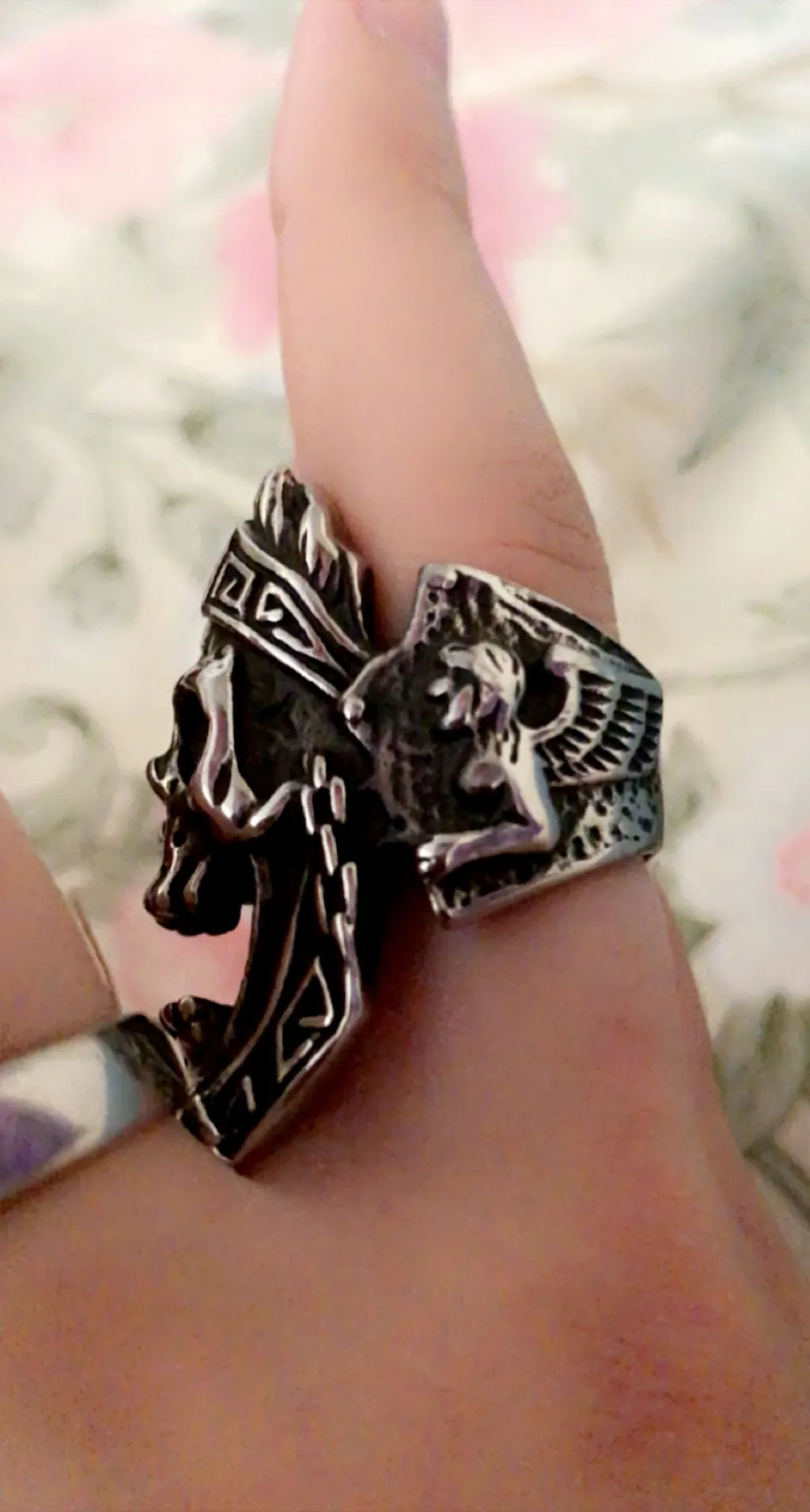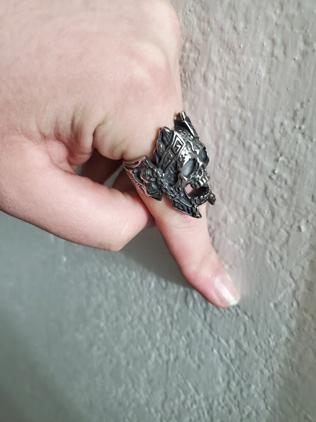 Semplice nel suo design, questo anello con teschio ha un simbolismo audace che si presta ai portatori più mascolini. Questo anello da uomo in acciaio inossidabile può essere indossato su qualsiasi dito e ha una presenza ampia ed esigente che non richiede accessori aggiuntivi per completare il tuo outfit.