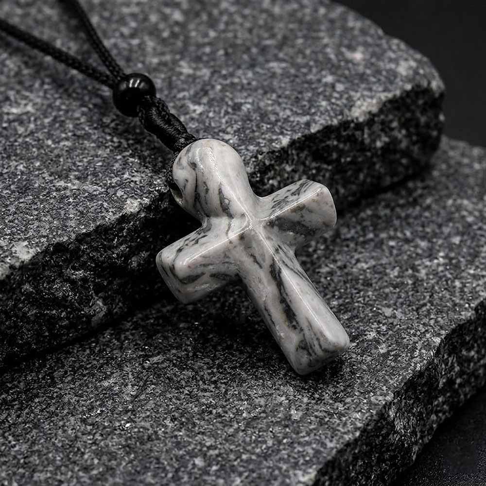 Embrace divine peace and spiritual energy with this exquisite natural crystal cross necklace. Meticulously hand-carved, each cross highlights the unique textures and vibrant colors of the raw healing stones, ranging from deep amethyst to grounding obsidian and soothing rose quartz. Suspended on a durable, adjustable woven cord, this sacred talisman provides everyday protection and spiritual balance. Whether you seek to strengthen your faith or simply add a touch of natural beauty to your gothic jewelry collection, this blessed amulet resonates with pure energy.