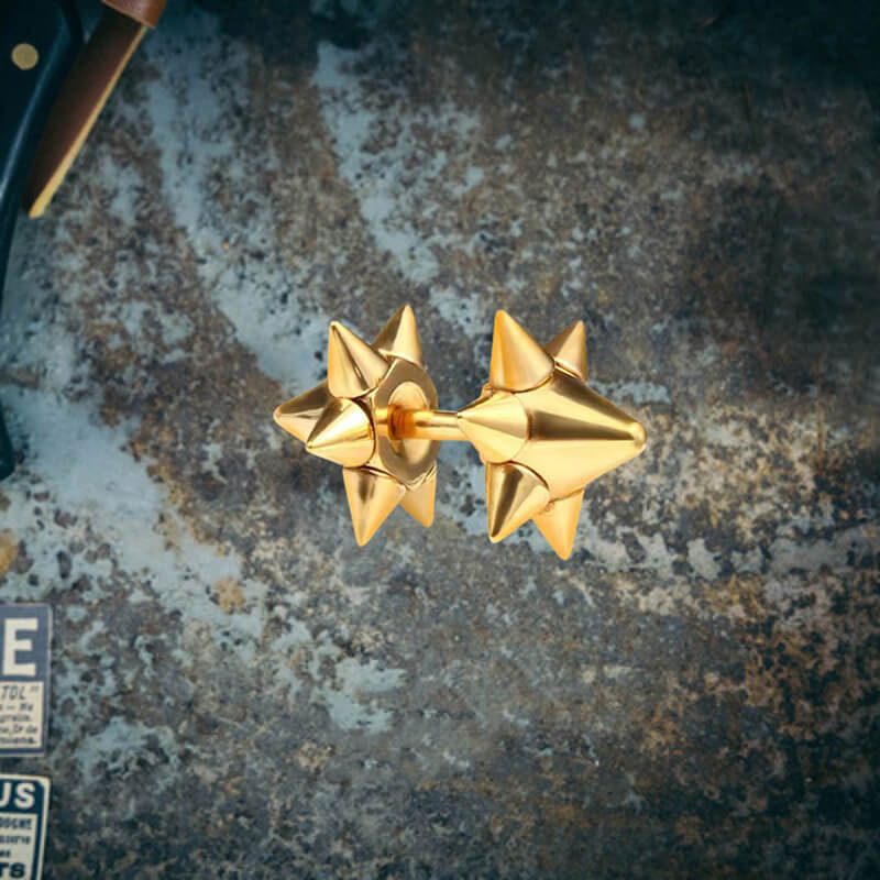 These punk-inspired double-sided spiked earrings are crafted from durable stainless steel, combining edgy design with long-lasting wear. Their unique double-sided spikes add dimension and boldness to any outfit, while the stainless steel ensures hypoallergenic comfort and resistance to tarnish. Perfect for those seeking a refined yet rebellious accessory that stands out with sophistication.