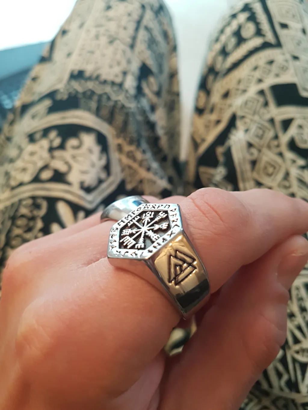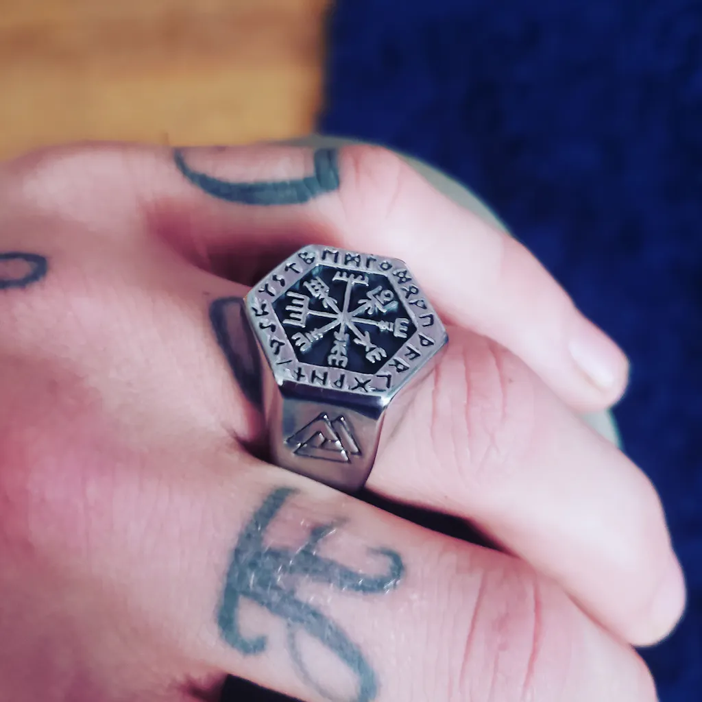 This finely detailed Viking Ring represents the Vegvisir which is the symbol of guidance and protection. This unique Men's Compass Ring will offer you protection and will allow you not to lose your way during storms and bad weather, even if you do not know your destination. Truly men's stainless steel rings.