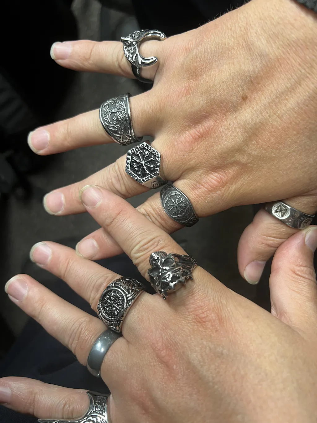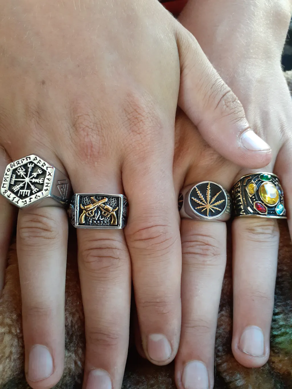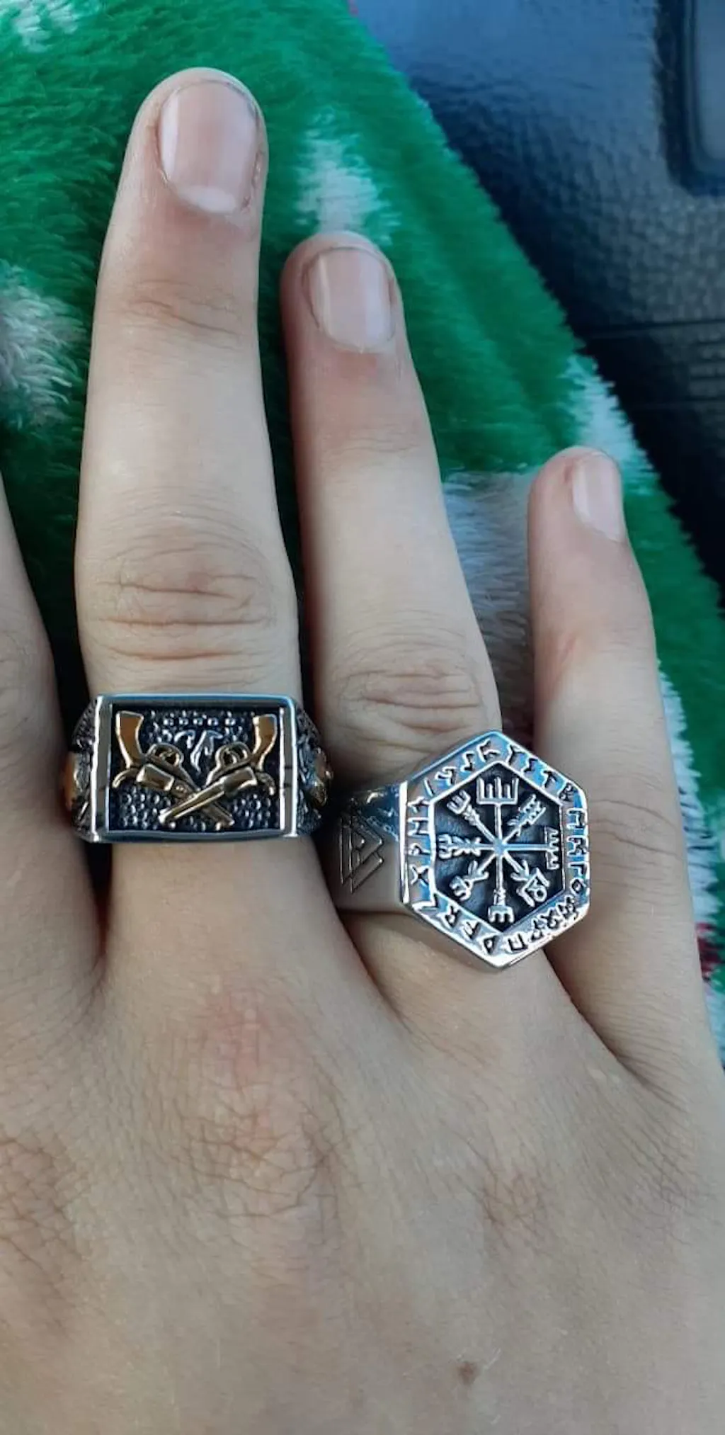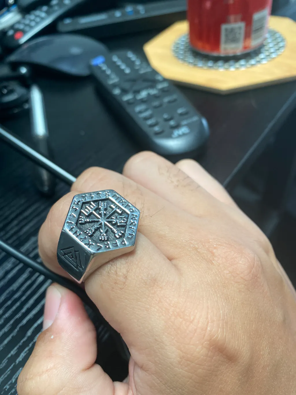 Very awesome ring I got randomly from the Mystery box I ordered. I like helmets and faces when It comes to most of my rings, but this ring Is a really solid accent to all of that. I'm not familiar with most Viking history and symbols but I did like seeing In the description that the symbols are intended to give guidance and protection. Really different and awesome addition to my collection.