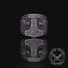 Viking Thor's Hammer Double Wolves Sterling Silver Ring