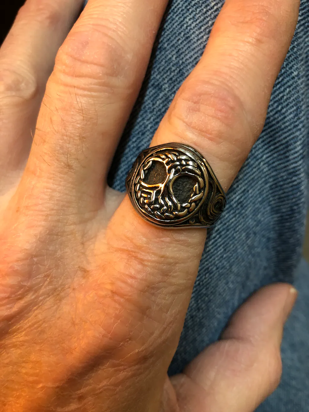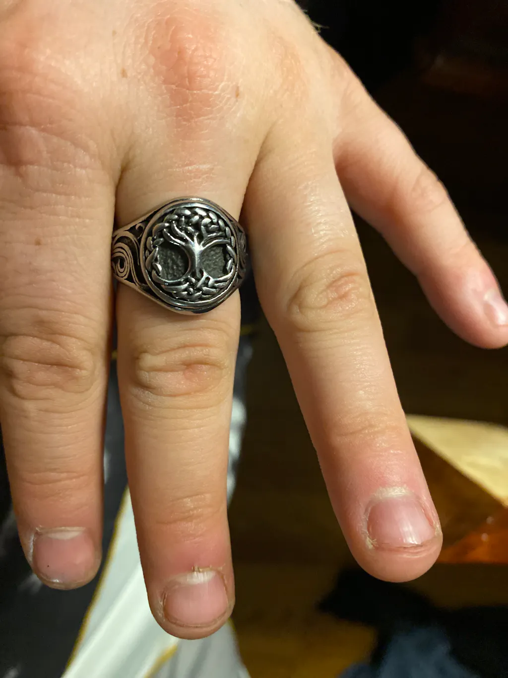 Yggdrasil is the tree of life, and it is an eternal green Ash tree; the branches stretch out over all of the nine worlds in Norse mythology, and extend up and above the heavens. Just as the branches of a tree thrive and grow upward to the sky, in our lives, we will also work hard to acquire more knowledge, wisdom and new experiences and become stronger. Therefore, the tree of life symbolizes our personal development, uniqueness and personal beauty.