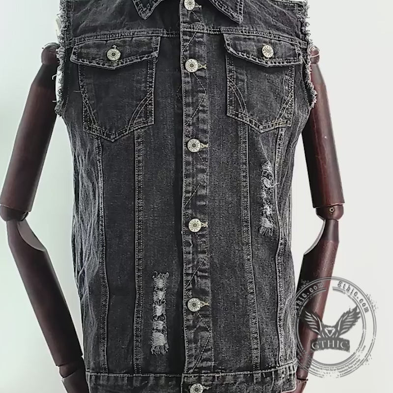 Punk Live To Ride Wings Skull Print Denim Vest 02 | Gthic.com