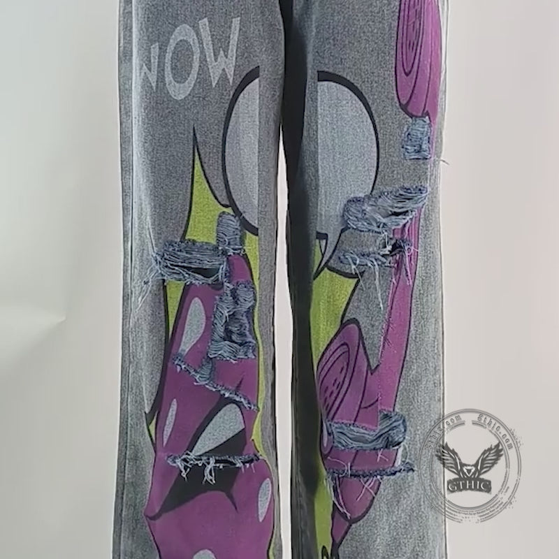 Fashion Y2K Cartoon Pattern High Waist Jeans | Gthic.com