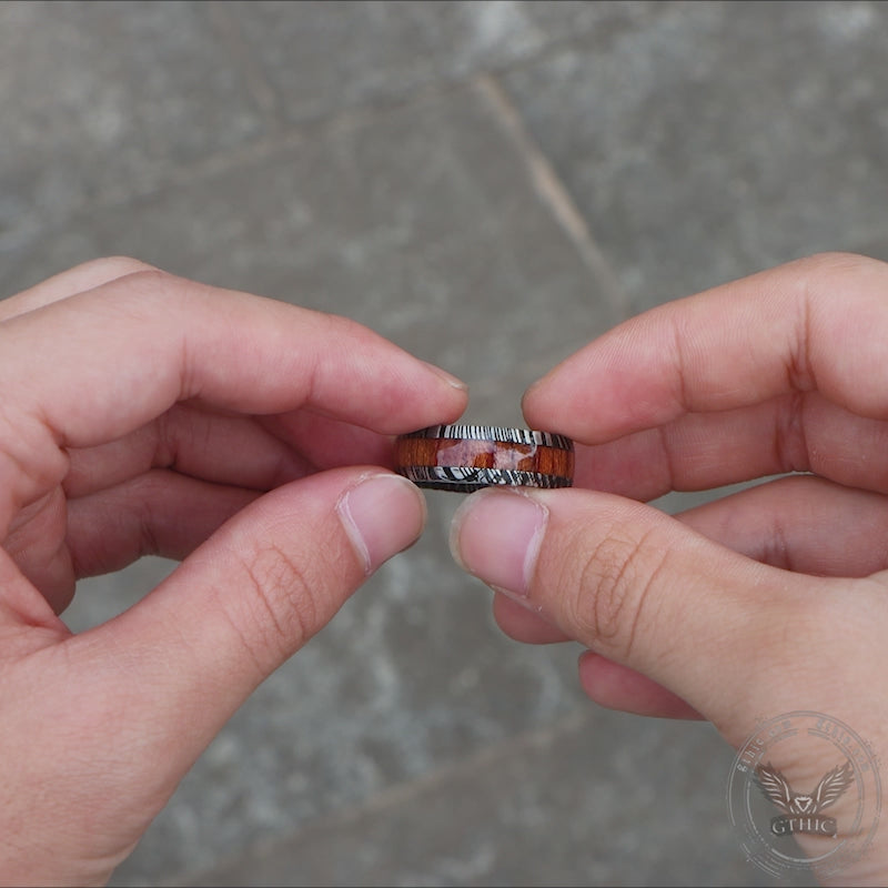 Wood Damascus Steel Minimalist Ring