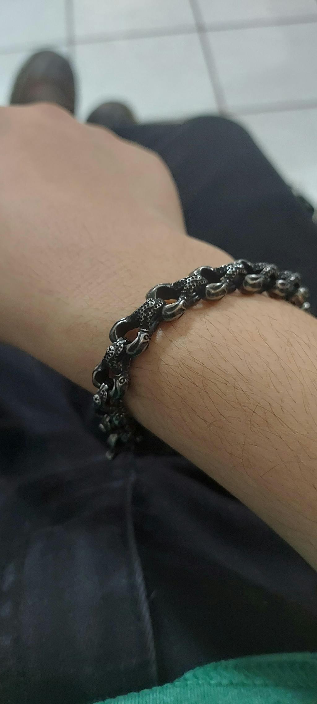 This Skull Octopus Stainless Steel Biker Bracelet is a heavy-duty accessory crafted from high-grade stainless steel, featuring a unique skull and octopus design. Its robust construction ensures durability, making it a great choice for any biker.