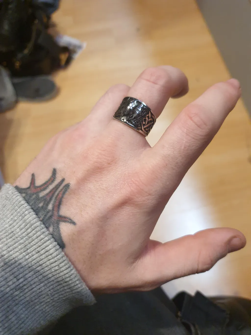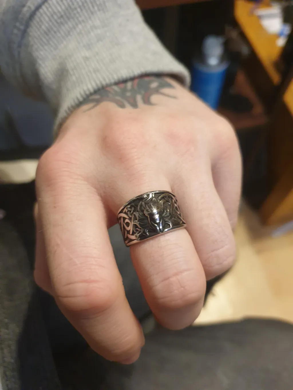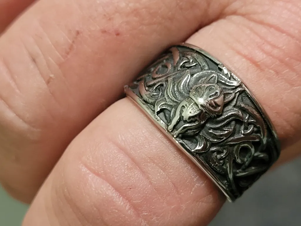 This attractive ring combines a nine-tailed fox and Celtic knots. The Nine-Tailed Fox came from stories and folklore in East Asia, and is a huge part of Chinese mythology. Depending on the origin, the Nine-Tailed Fox can be both a good or bad omen, but it's more commonly described to be impish. Also, the wearer should not think too much about whether it will bring good luck or bad luck. It is the most important to enjoy the beauty it brings to your outfit.