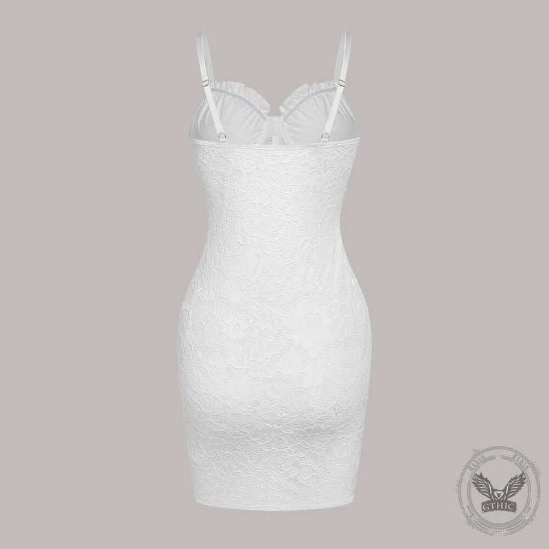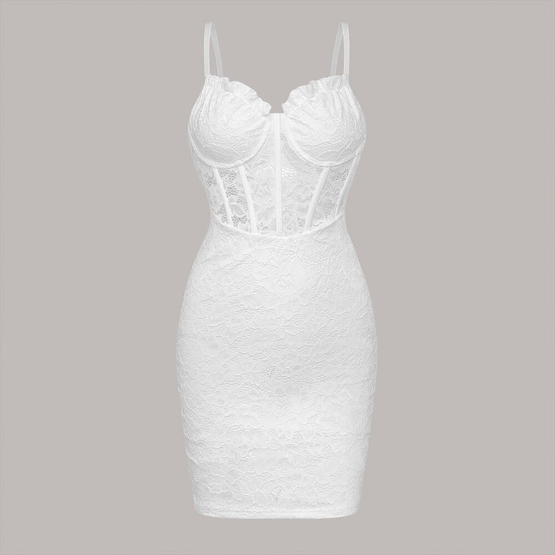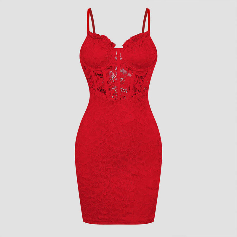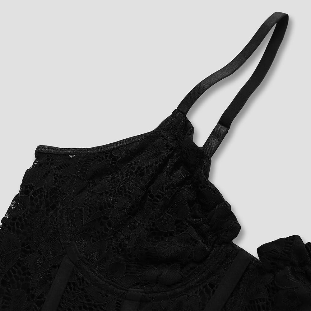 Elevate your wardrobe with our Fashion Solid Lace See-Through Suspender Dress. Crafted with exquisite lace detailing, this dress exudes elegance and grace. The see-through design adds a touch of sensuality while the suspenders give a playful twist. Perfect for a statement-making evening look.