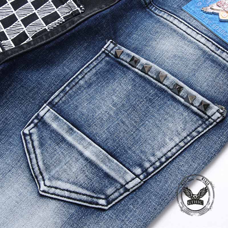 Introducing the Punk Lettering Printed Distressed Slim-Fit Jeans, a bold statement piece for the modern wardrobe. These jeans feature edgy punk-inspired lettering prints and distinctive rivet detailing on the back pockets. The carefully crafted distressed elements and slim-fit design offer a contemporary and rebellious aesthetic. Constructed for both style and comfort.