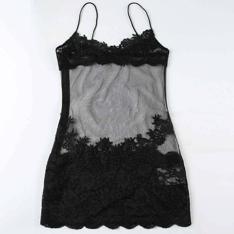 See-Through Mesh Lace Sexy Suspender Dress