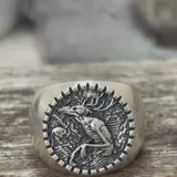 Crafted from high-quality sterling silver, this vintage Wendigo skeleton ring is a unique piece that adds a touch of mystery to any look. Hand-carved with intricate details, this ring showcases the ancient legend of the Wendigo creature. Perfect for those who appreciate history and legends.